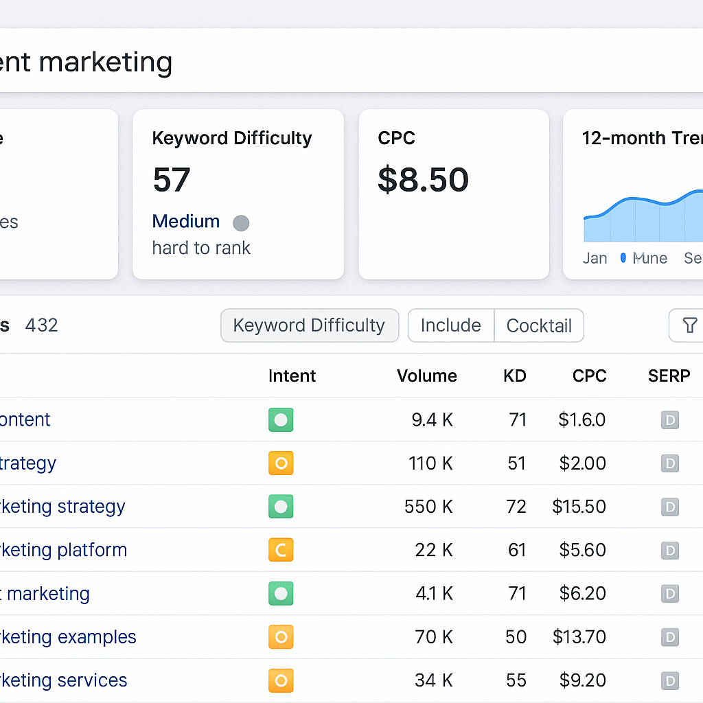 Every successful campaign starts with solid research. Tools like Ahrefs and Semrush continue to dominate keyword and competitor analysis. Ahrefs’ Content Explorer uncovers what’s performing best in your niche, while Semrush’s Topic Research tool reveals keyword clusters and popular questions to inspire high-value posts.